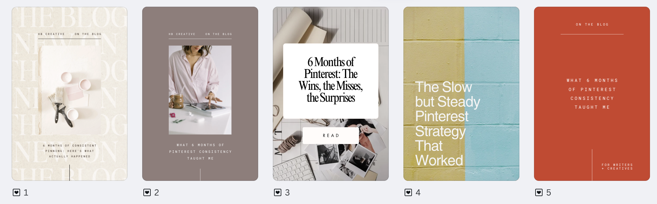 I decided to go against my natural beliefs for this creative process. I am someone who always opts for quality over quantity, but in this case, I needed to create a lot of pins and didn’t yet know what would or wouldn’t work on Pinterest. So I focused on quantity, on trying a bunch of different things and seeing what worked for the algorithm.